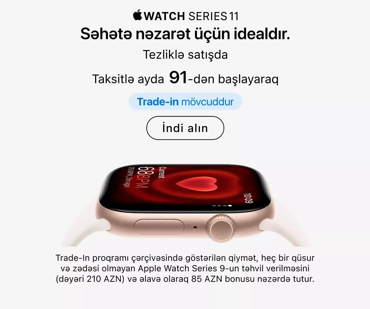 Ən son model iPhone-lar – həm baza versiyaları, həm də Pro variantları daim mövcuddur. İş, təhsil və yaradıcılıq üçün iPad və MacBook modellərini, stasionar istifadə üçün isə iMac, Mac Studio və Studio Display ekranını seçə bilərsiniz.