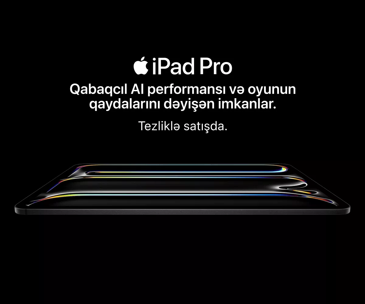 Ən son model iPhone-lar – həm baza versiyaları, həm də Pro variantları daim mövcuddur. İş, təhsil və yaradıcılıq üçün iPad və MacBook modellərini, stasionar istifadə üçün isə iMac, Mac Studio və Studio Display ekranını seçə bilərsiniz.