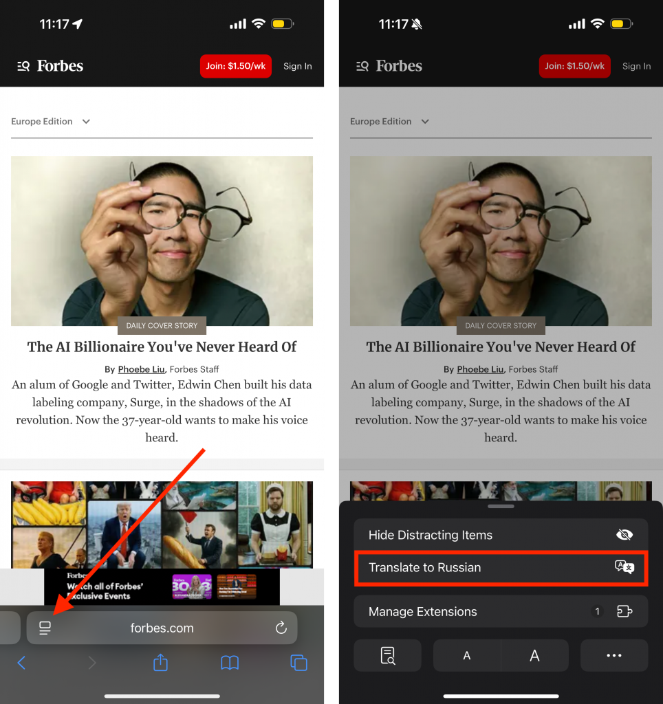 Siz iPhone-da sistem dili kimi quraşdırılmış veb-səhifəni dərhal müxtəlif dillərə tərcümə edə bilərsiniz. Üçüncü tərəf proqramlarından istifadə etmədən və plaginləri quraşdırmadan. Bunun üçün: