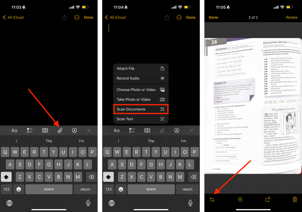 - Sümüyə bənzər işarəyə toxunun > “Scan Documents”;
