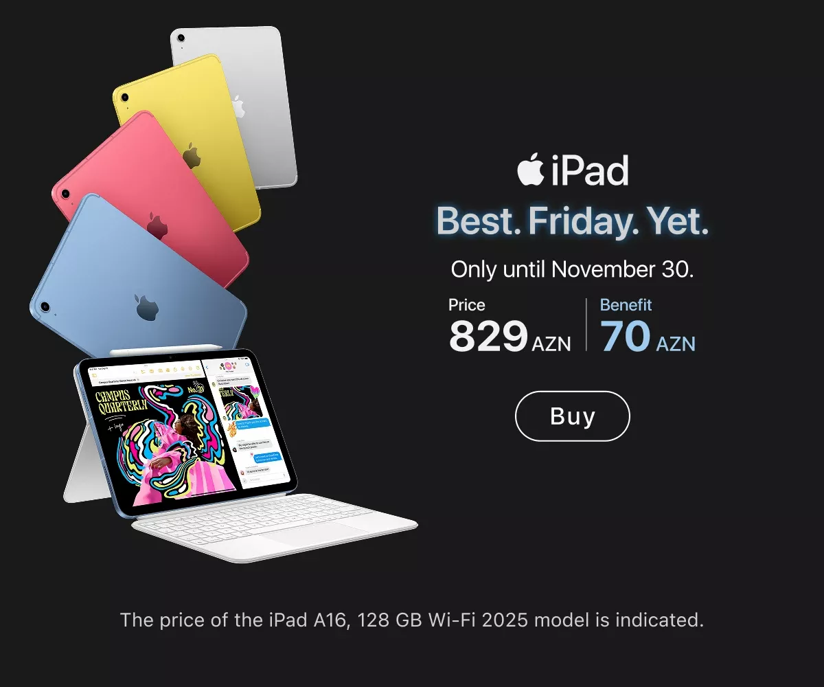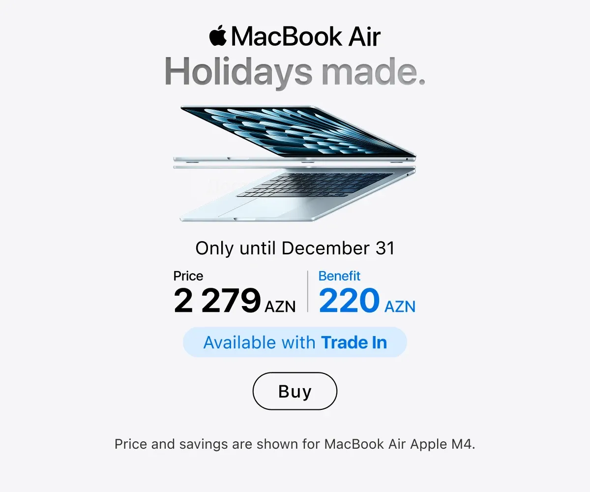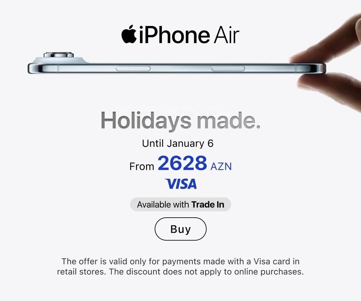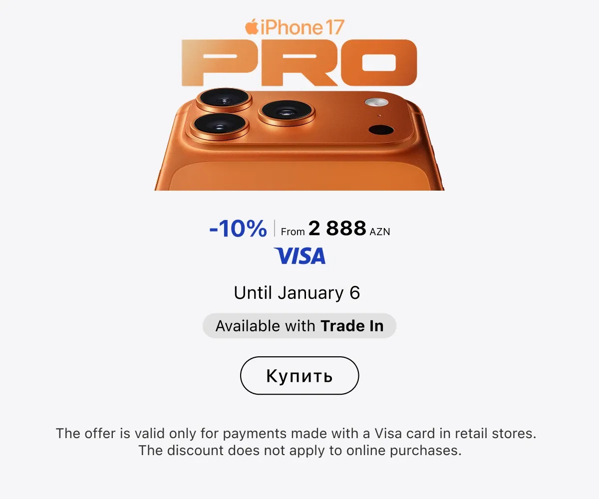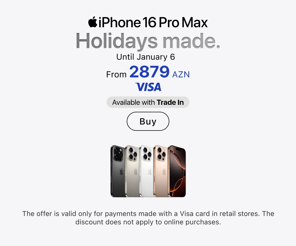 You can place an order online with delivery across Azerbaijan or in any retail store — in all cases, original Apple equipment is presented everywhere. Current locations of stores and service centers are listed on the website. Buy gadgets of a trusted brand and use them for your joy.