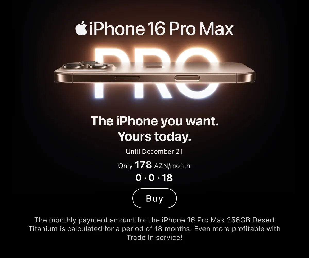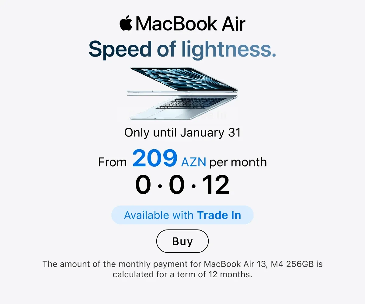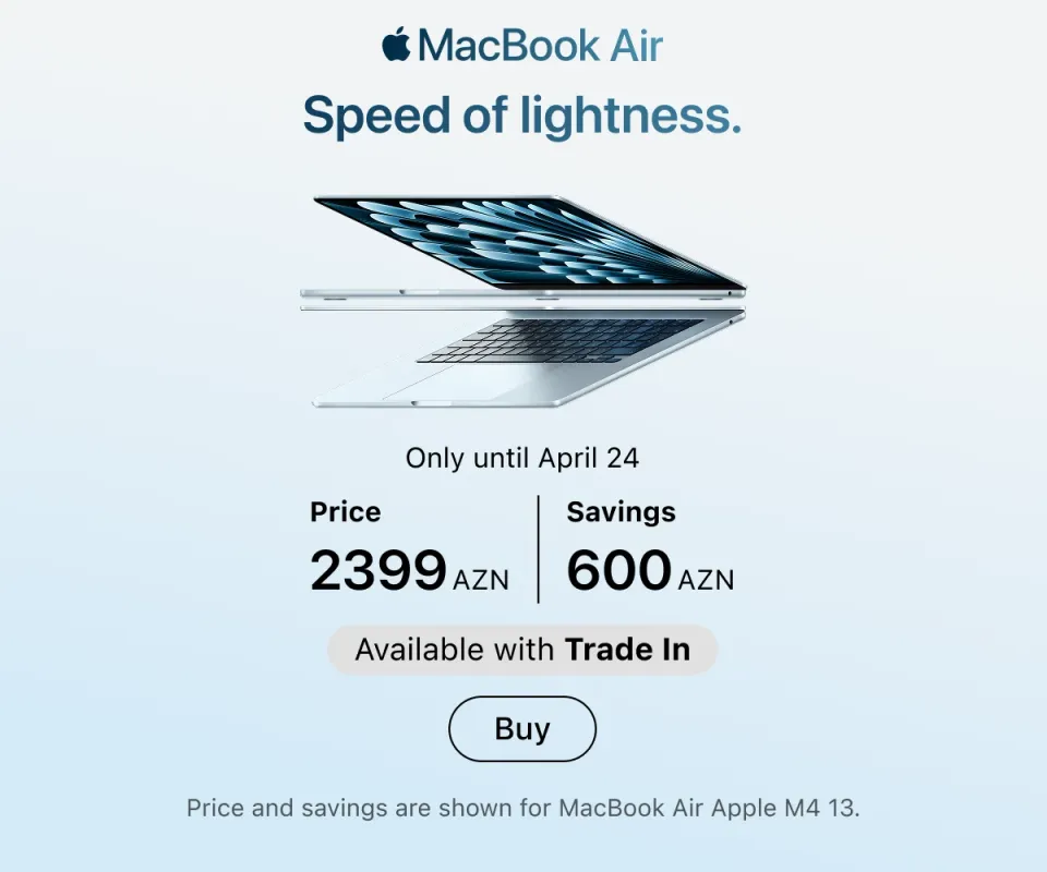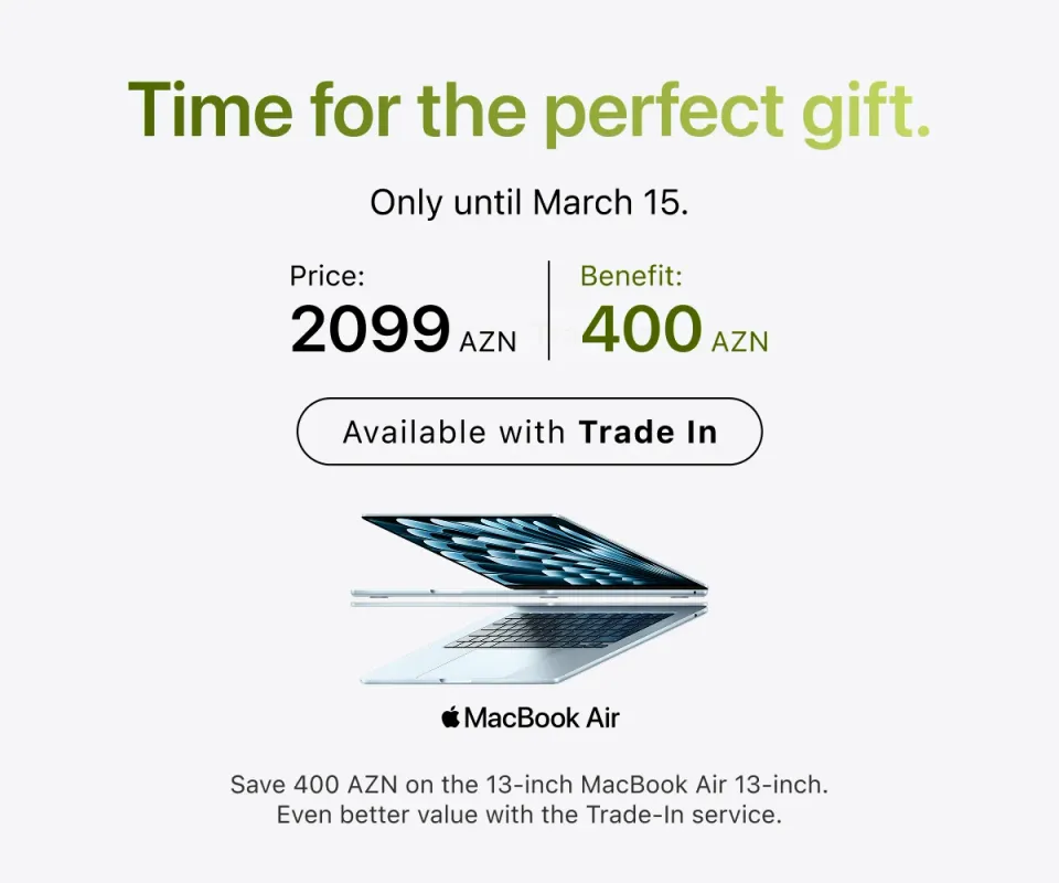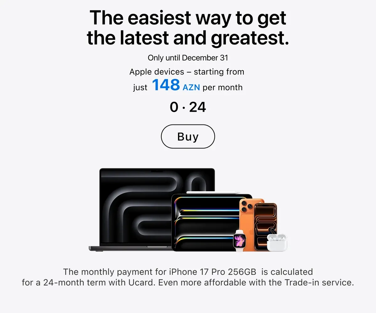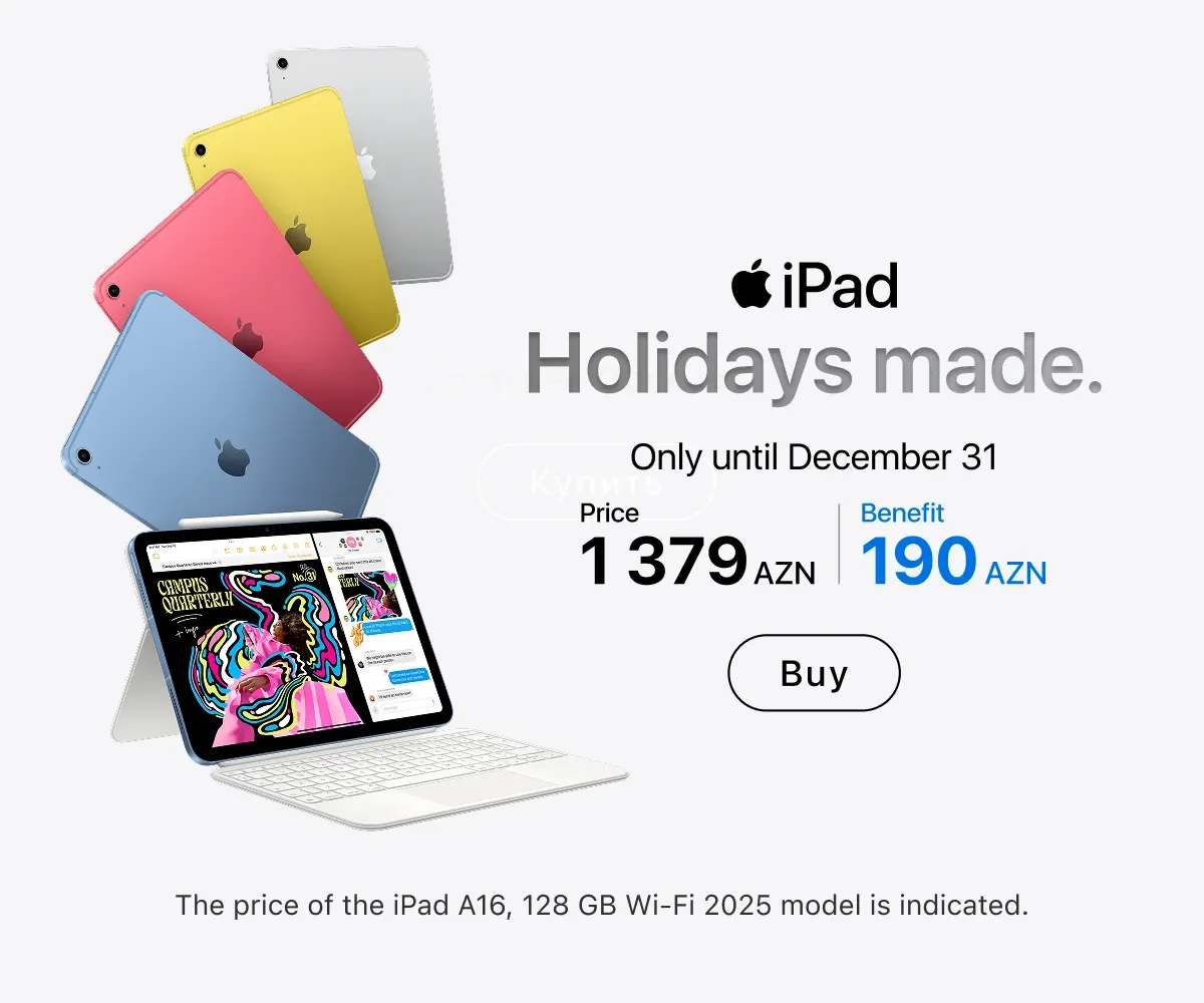 You can place an order online with delivery across Azerbaijan or in any retail store — in all cases, original Apple equipment is presented everywhere. Current locations of stores and service centers are listed on the website. Buy gadgets of a trusted brand and use them for your joy.