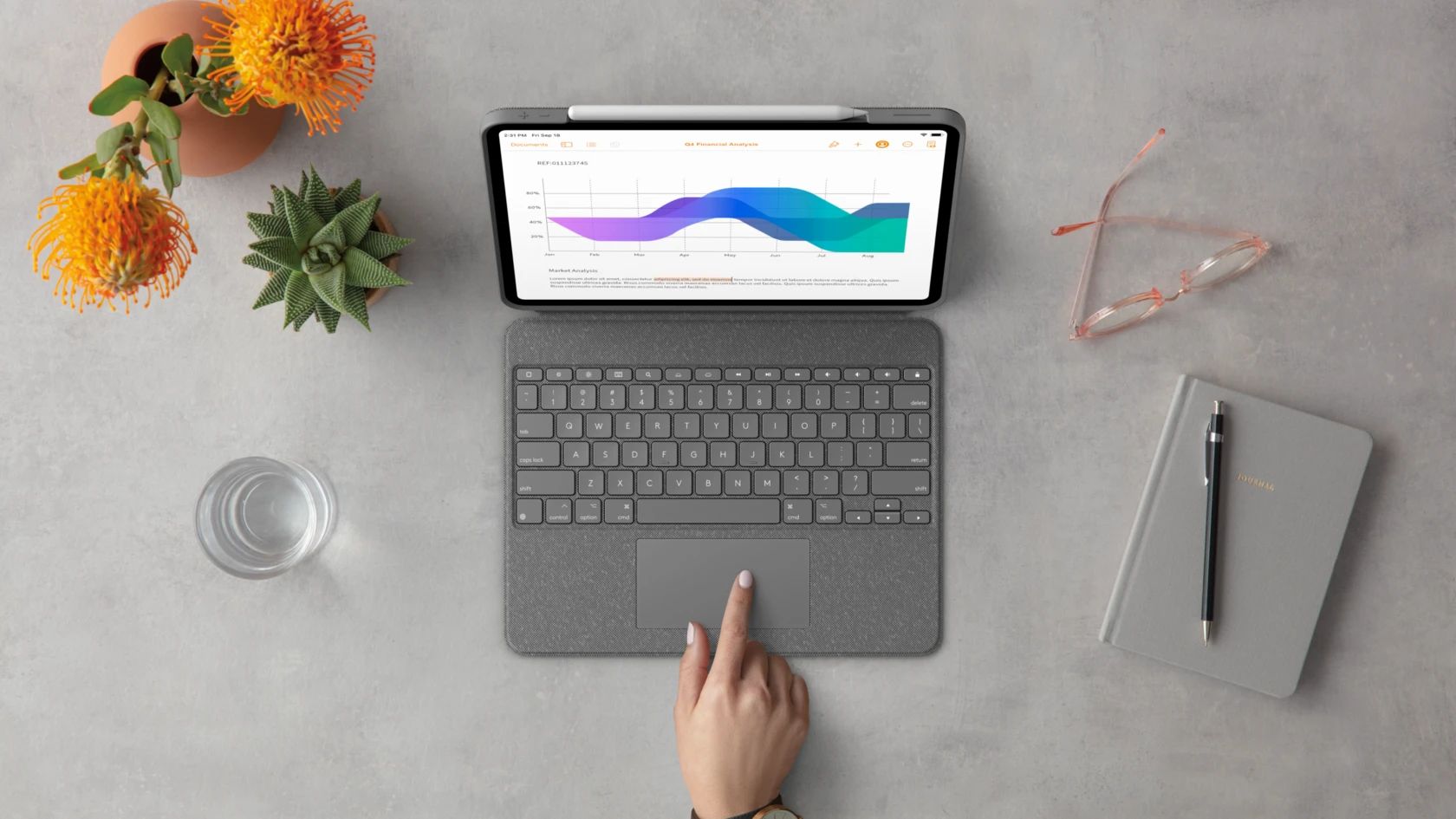 When typing is complete, detach the keyboard and use the iPad screen.
