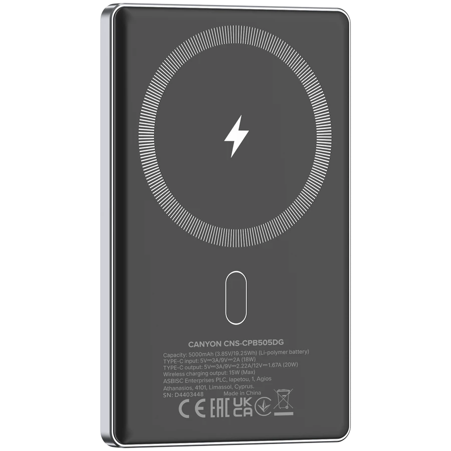 CANYON OnPower 505 Power Bank, 5000 mAh, Lithium Polymer