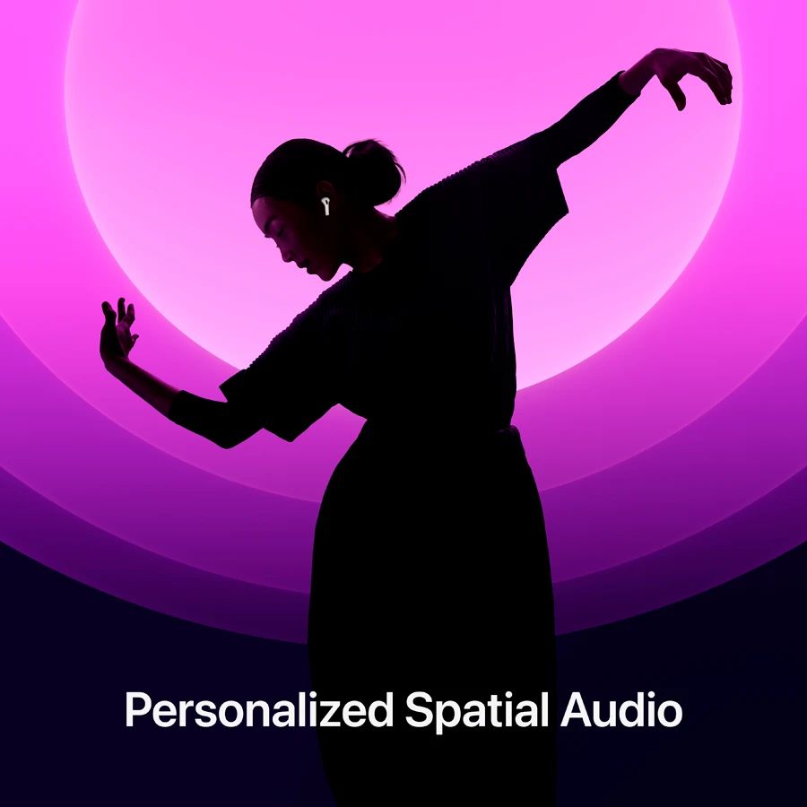 - PERSONALIZED SPATIAL AUDIO—Personalized Spatial Audio with dynamic head tracking places sound all around you, creating a theater-like listening experience for music, TV shows, movies, games, and more.