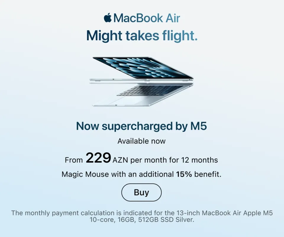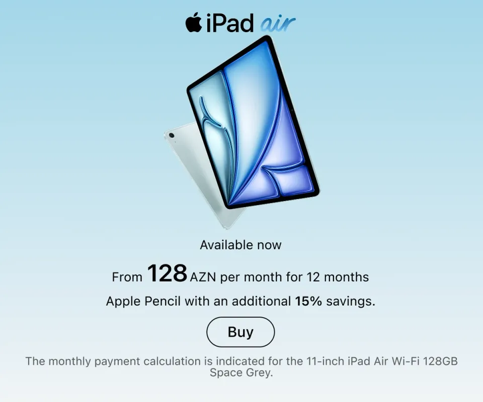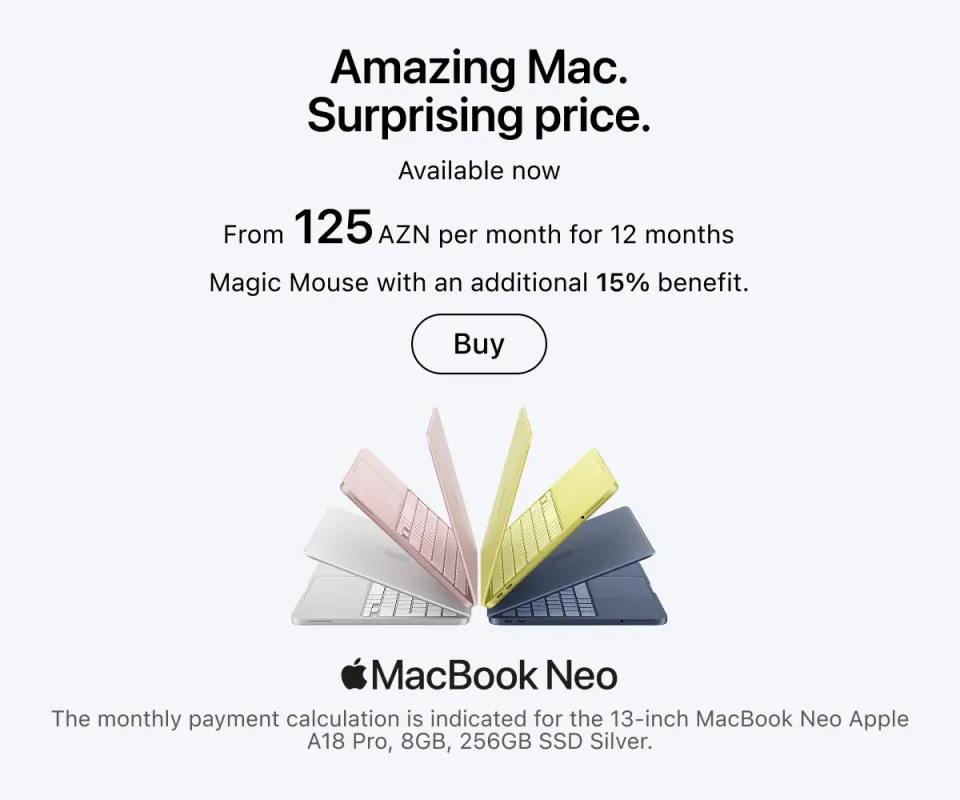 You can place an order online with delivery across Azerbaijan or in any retail store — in all cases, original Apple equipment is presented everywhere. Current locations of stores and service centers are listed on the website. Buy gadgets of a trusted brand and use them for your joy.