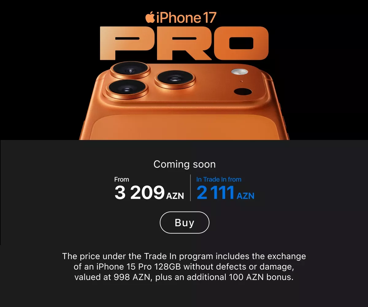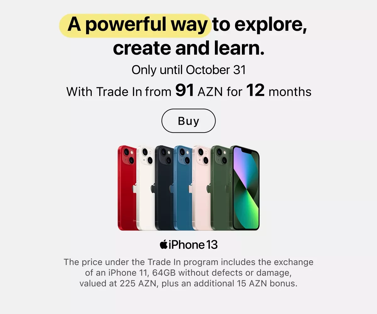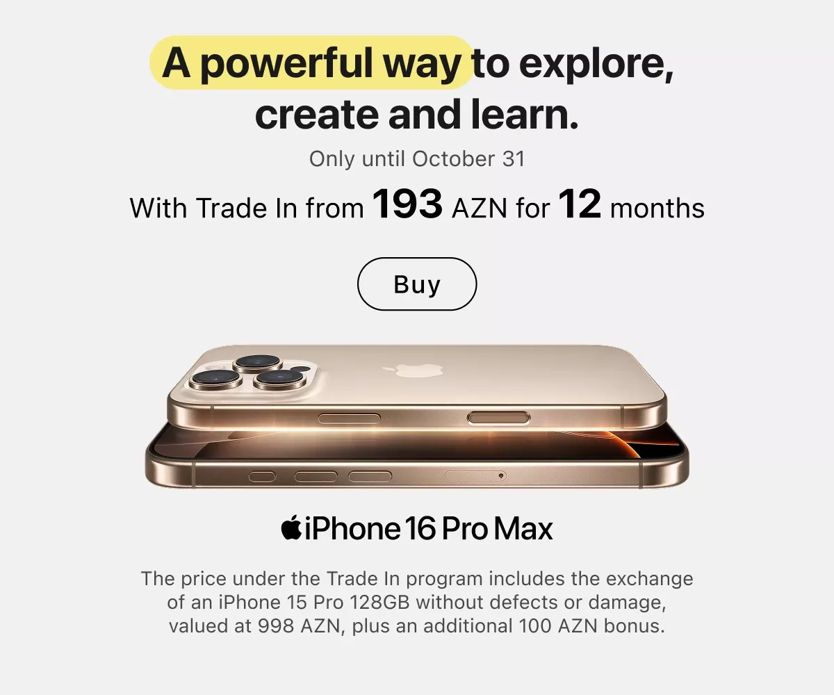 You can place an order online with delivery across Azerbaijan or in any retail store — in all cases, original Apple equipment is presented everywhere. Current locations of stores and service centers are listed on the website. Buy gadgets of a trusted brand and use them for your joy.