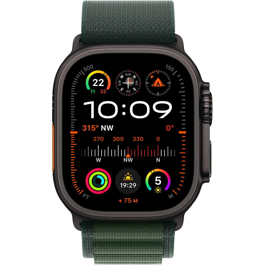 Apple Watch Ultra 2 2024 GPS + Cellular 49mm Black Titanium Case with Dark Green Alpine Loop - Medium, Model A2986
