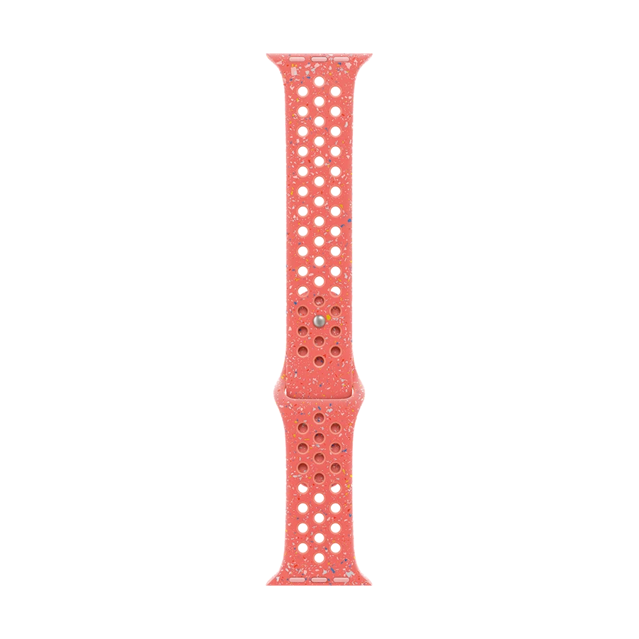 Hava keçirməsi üçün sıxışdırılaraq qəliblənmiş dəliklərlə hazırlanan Nike idman kəmərciyi davamlı, möhkəm və heyranedici dərəcədə yumşaqdır. O, hər bir kəmərciyi tam unikal edəcək təsadüfi naxışlar əmələ gətirən rəngli hissəciklərə malikdir. Hamar və sıx material biləyinizin ətrafında nəfis və komfortlu şəkildə oturur. Yeni alüminium pin-and-tuck bağı sancağa təzə, mat görünüş verir.