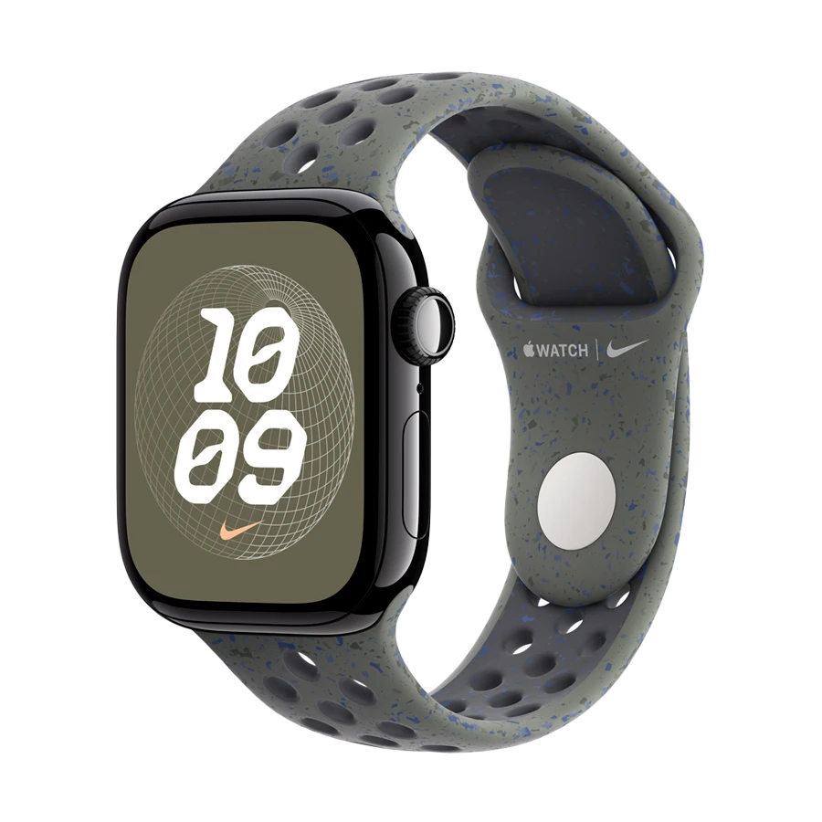 Hava keçirməsi üçün sıxışdırılaraq qəliblənmiş dəliklərlə hazırlanan Nike idman kəmərciyi davamlı, möhkəm və heyranedici dərəcədə yumşaqdır. O, hər bir kəmərciyi tam unikal edəcək təsadüfi naxışlar əmələ gətirən rəngli hissəciklərə malikdir. Hamar və sıx material biləyinizin ətrafında nəfis və komfortlu şəkildə oturur. Yeni alüminium pin-and-tuck bağı sancağa təzə, mat görünüş verir.