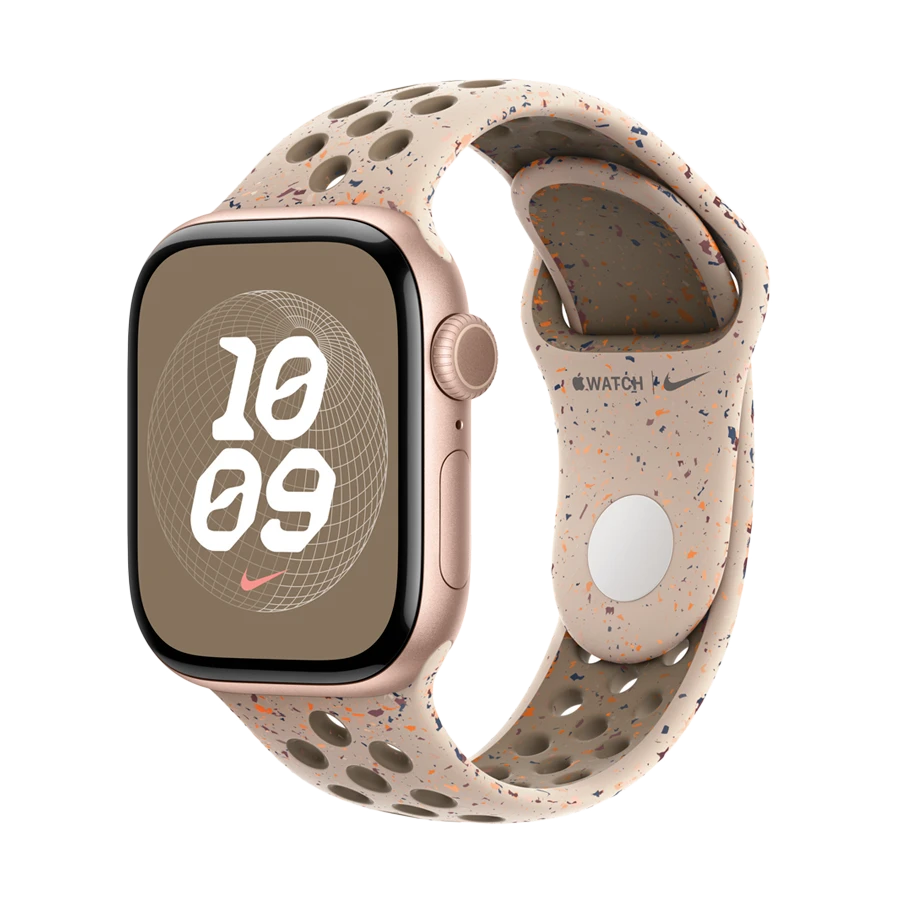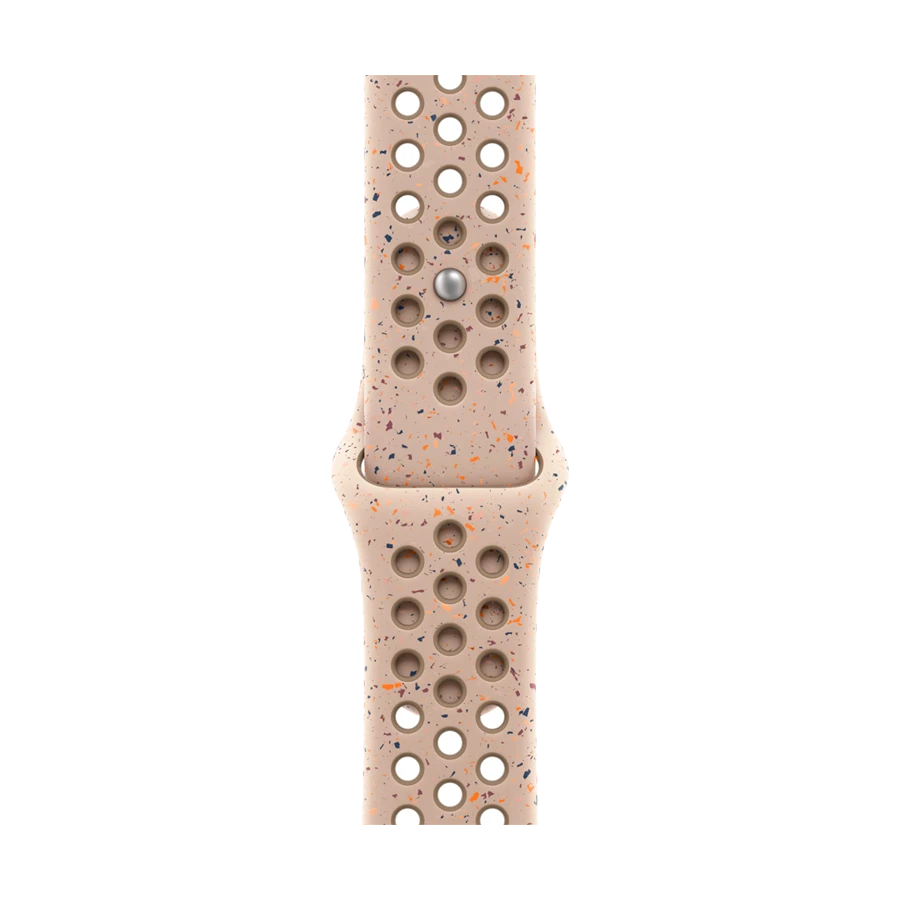 Hava keçirməsi üçün sıxışdırılaraq qəliblənmiş dəliklərlə hazırlanan Nike idman kəmərciyi davamlı, möhkəm və heyranedici dərəcədə yumşaqdır. O, hər bir kəmərciyi tam unikal edəcək təsadüfi naxışlar əmələ gətirən rəngli hissəciklərə malikdir. Hamar və sıx material biləyinizin ətrafında nəfis və komfortlu şəkildə oturur. Yeni alüminium pin-and-tuck bağı sancağa təzə, mat görünüş verir.