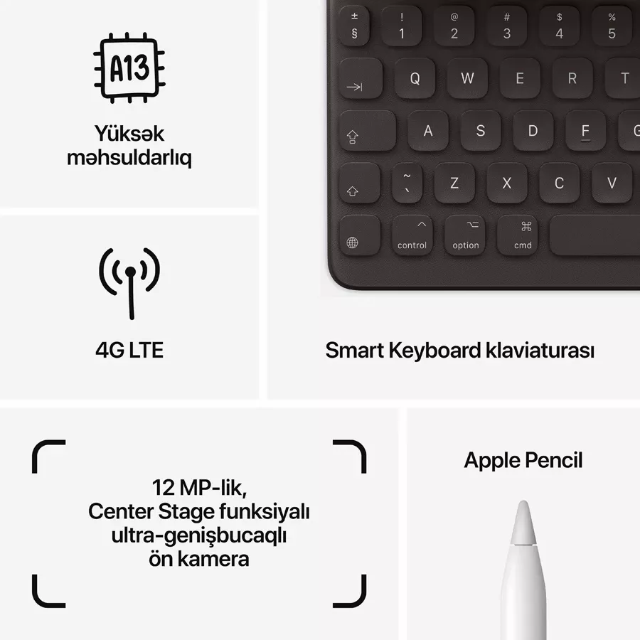 - SÜRƏTLİ WI-FI BAĞLANTISI – Sürətli Wi-Fi və 4G LTE mobil rabitəsi evdə, işdə, təhsil ocağında və ya iPad ilə getdiyiniz istənilən yerdə sizi bağlantıda saxlayır.