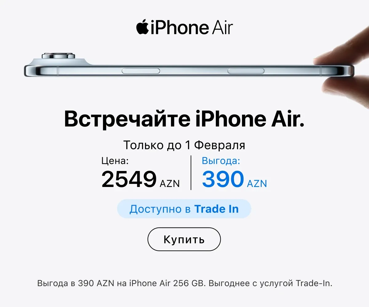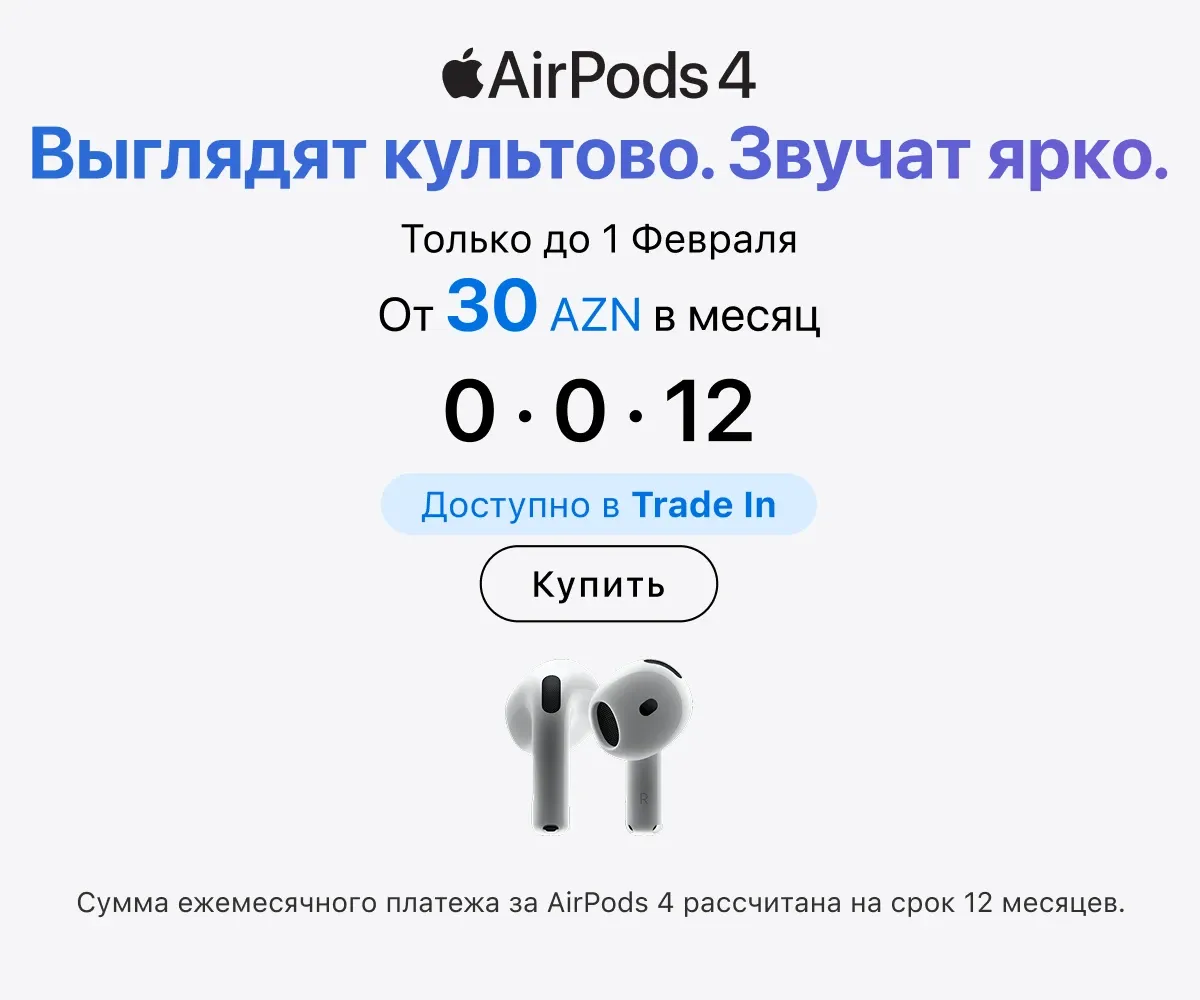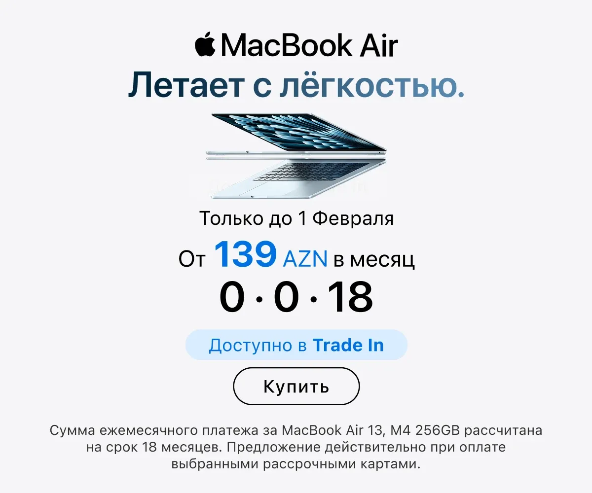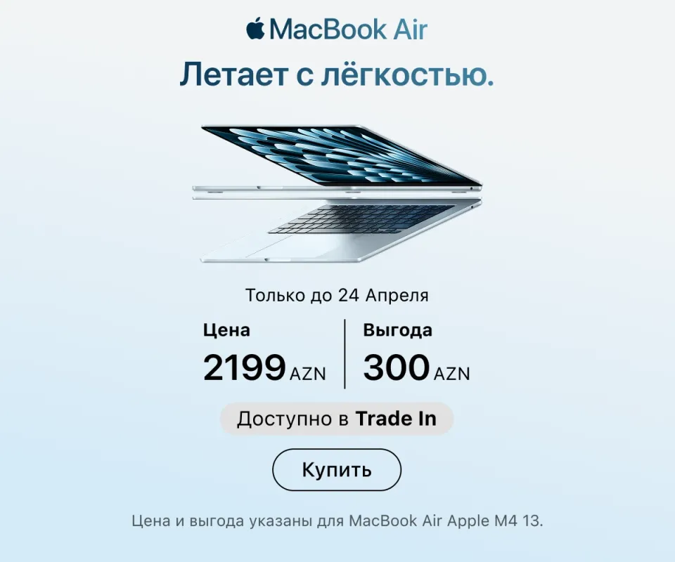 Оформить заказ можно онлайн с доставкой по всему Азербайджану или в любом розничном магазине — в любом случае всюду представлена оригинальная техника Apple. Актуальные адреса магазинов и сервисных центров указаны на сайте. Покупайте гаджеты проверенного бренда и пользуйтесь ею в свое удовольствие.