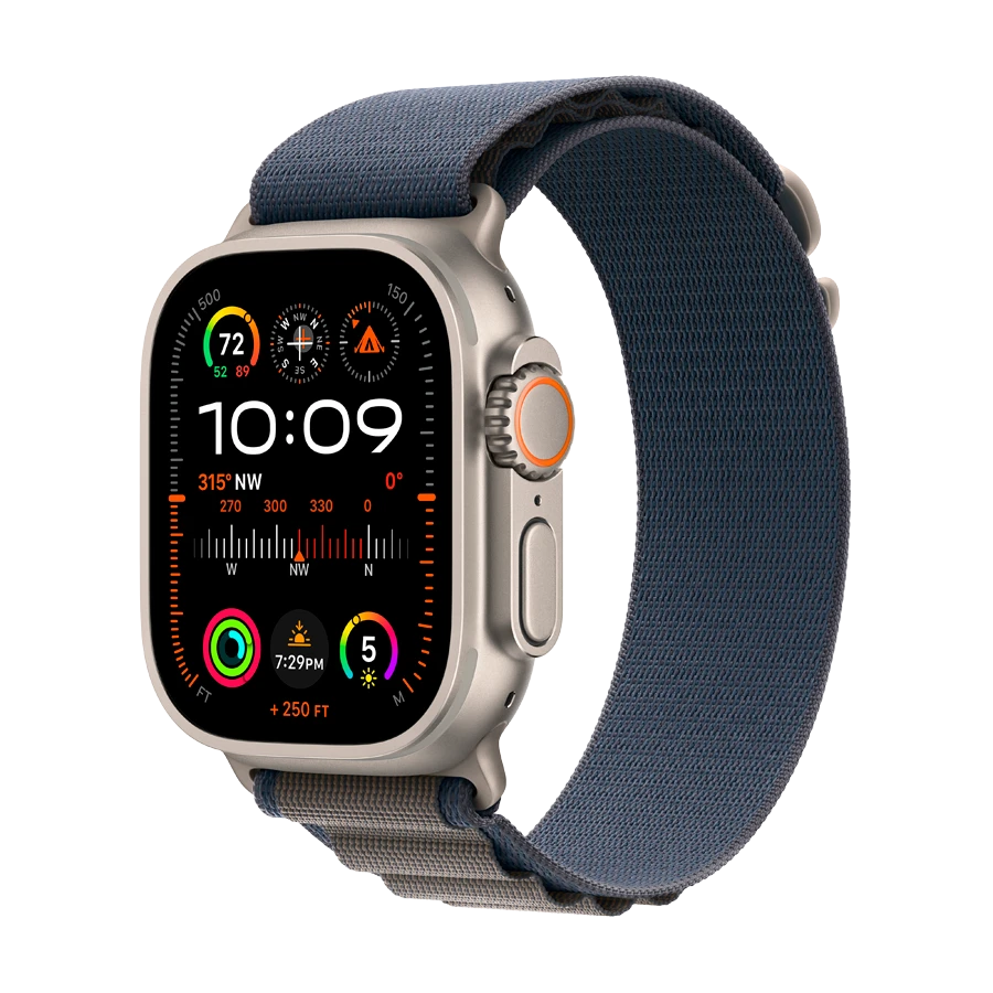 Apple Watch Ultra 2 GPS + Cellular, 49mm Titanium Case with Blue Alpine Loop - Large, Model A2986