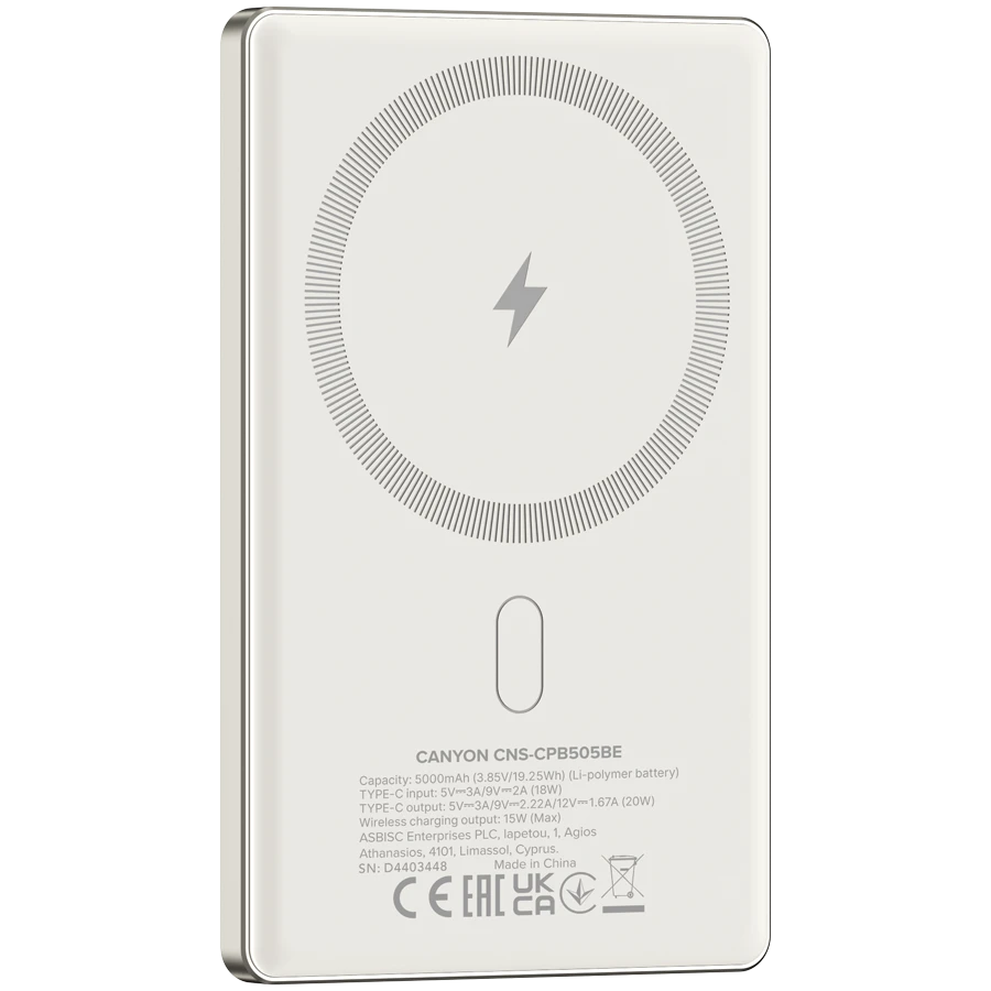 CANYON OnPower 505 Портативное зарядное устройство, 5000 мА·ч, Li-pol