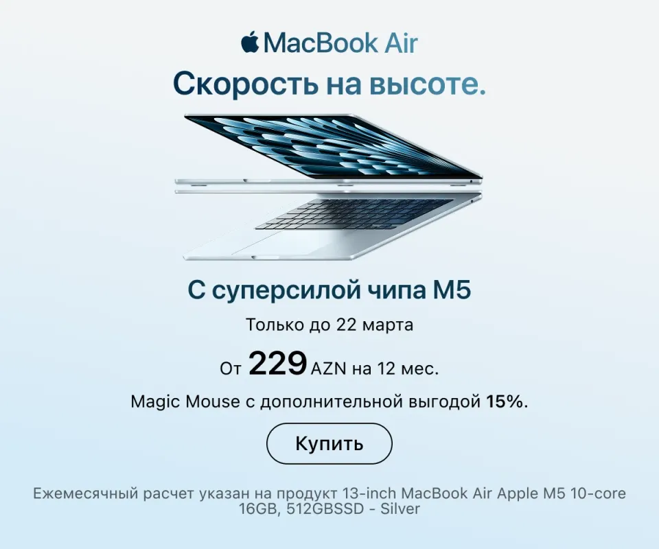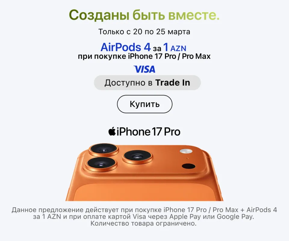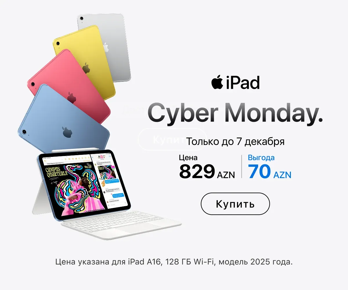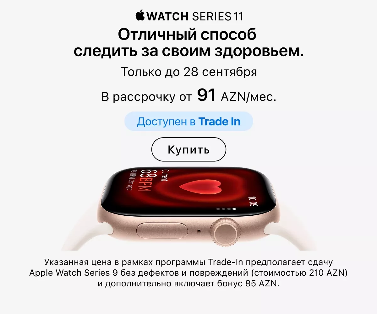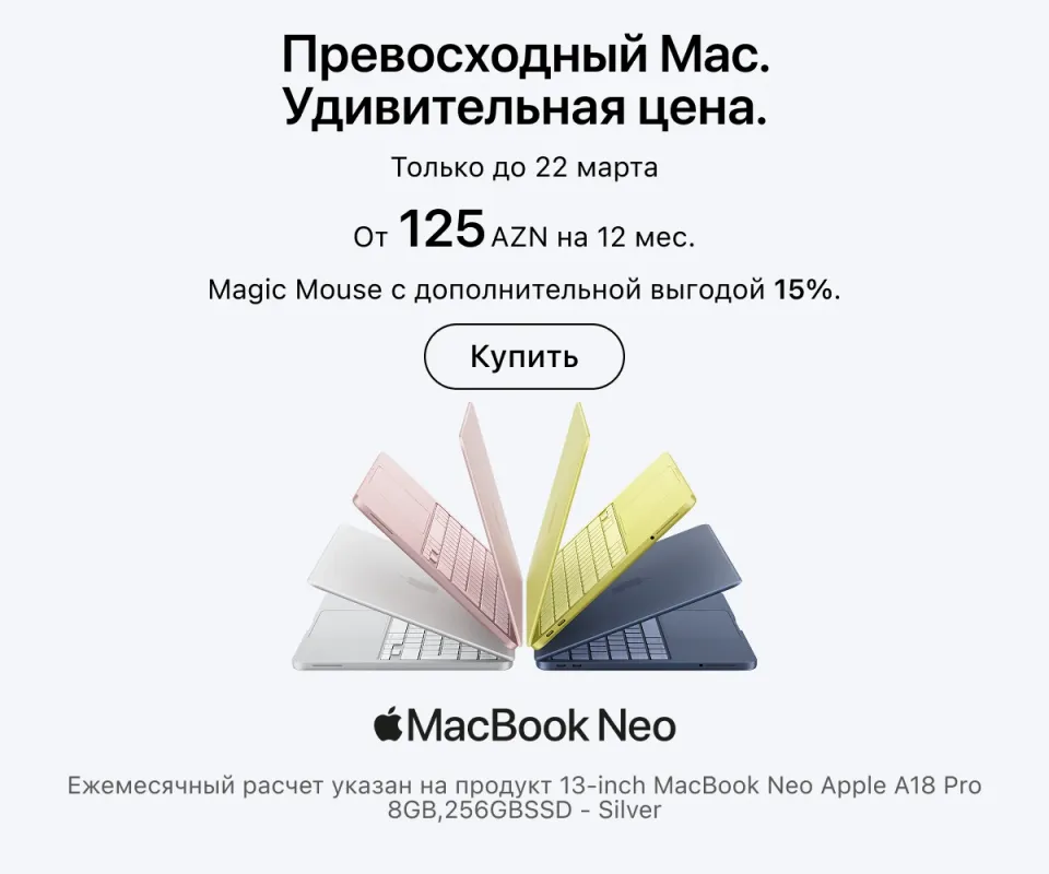 Оформить заказ можно онлайн с доставкой по всему Азербайджану или в любом розничном магазине — в любом случае всюду представлена оригинальная техника Apple. Актуальные адреса магазинов и сервисных центров указаны на сайте. Покупайте гаджеты проверенного бренда и пользуйтесь ею в свое удовольствие.