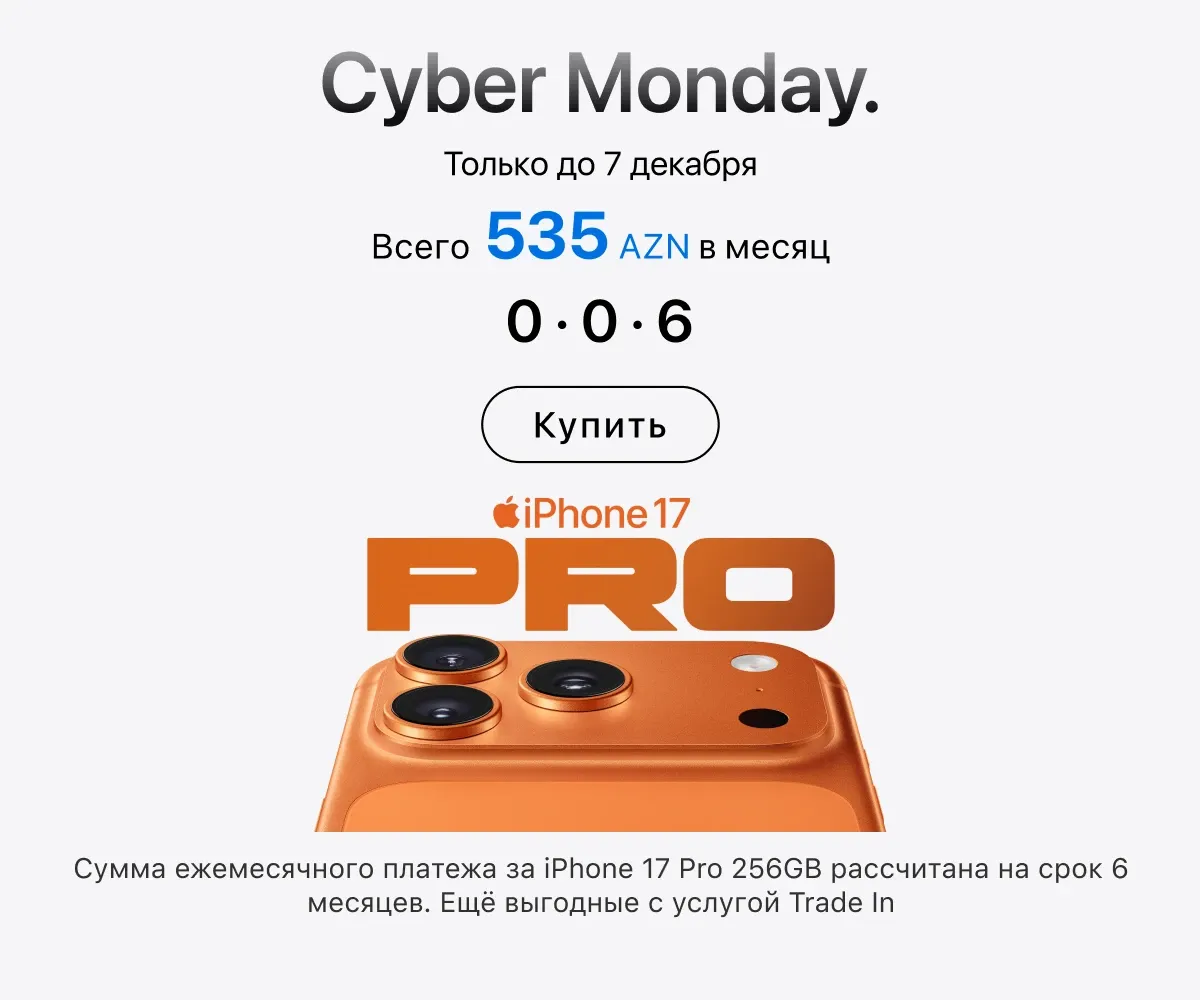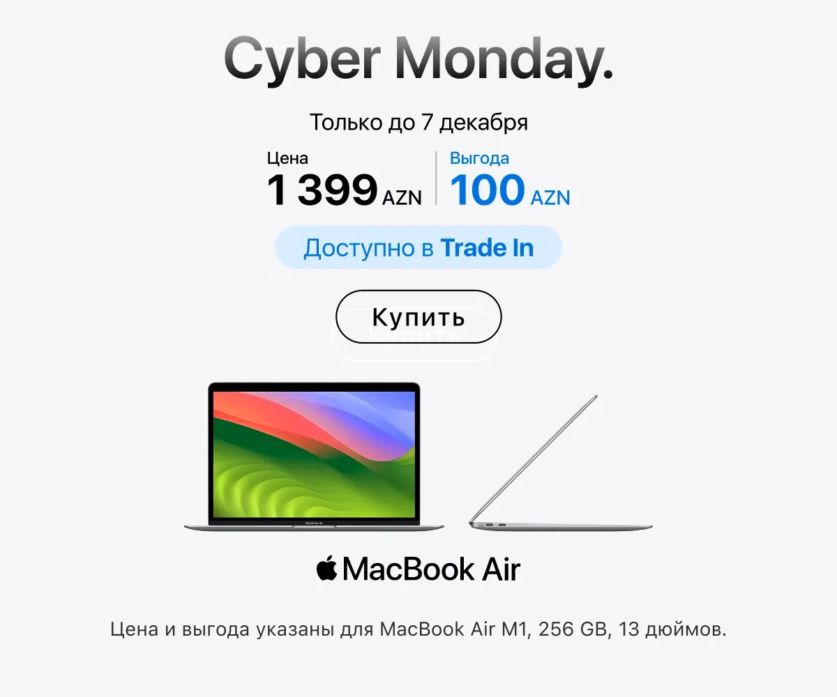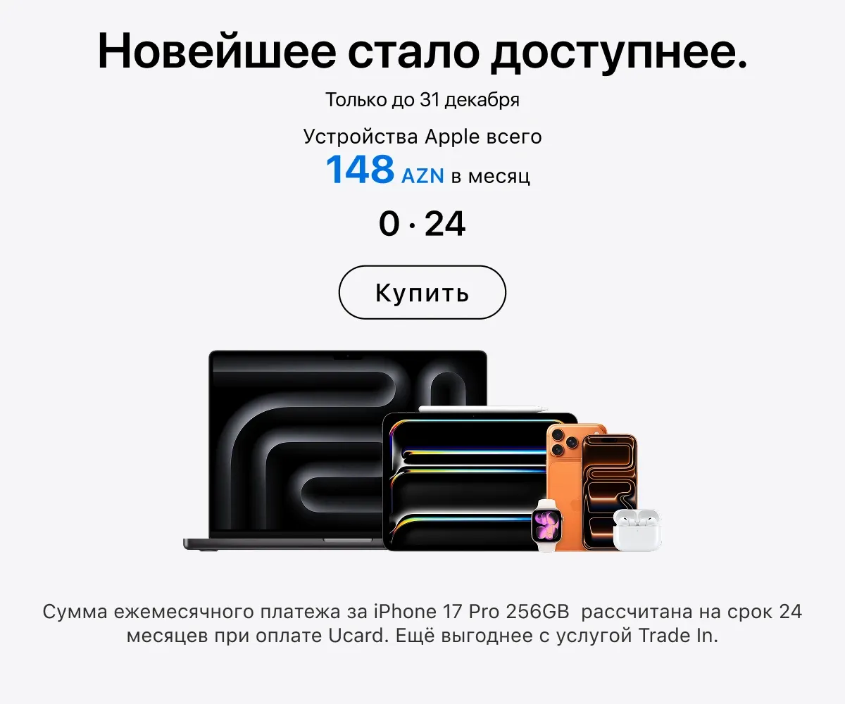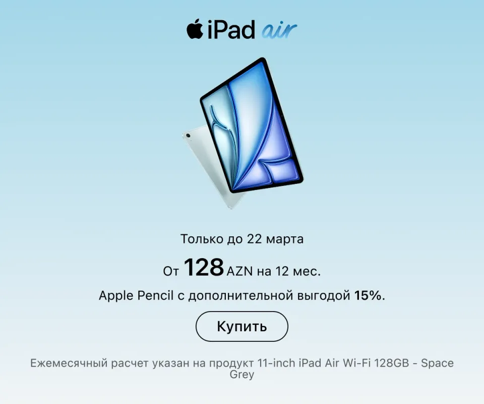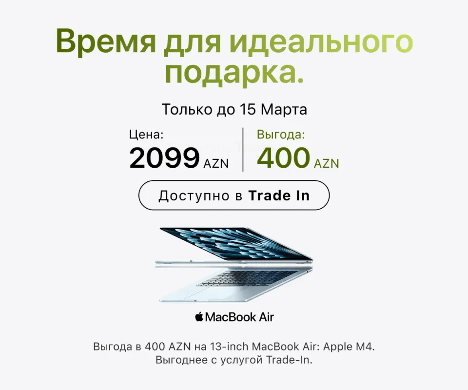 Оформить заказ можно онлайн с доставкой по всему Азербайджану или в любом розничном магазине — в любом случае всюду представлена оригинальная техника Apple. Актуальные адреса магазинов и сервисных центров указаны на сайте. Покупайте гаджеты проверенного бренда и пользуйтесь ею в свое удовольствие.
