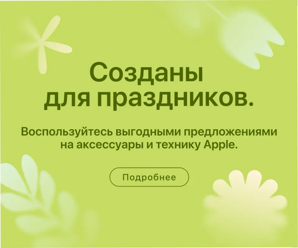 В наличии все последние модели iPhone — от базовых до Pro-версий. Для работы, учебы и творчества можно подобрать iPad и MacBook, а для стационарной работы — iMac или Mac Studio и дисплей Studio Display.